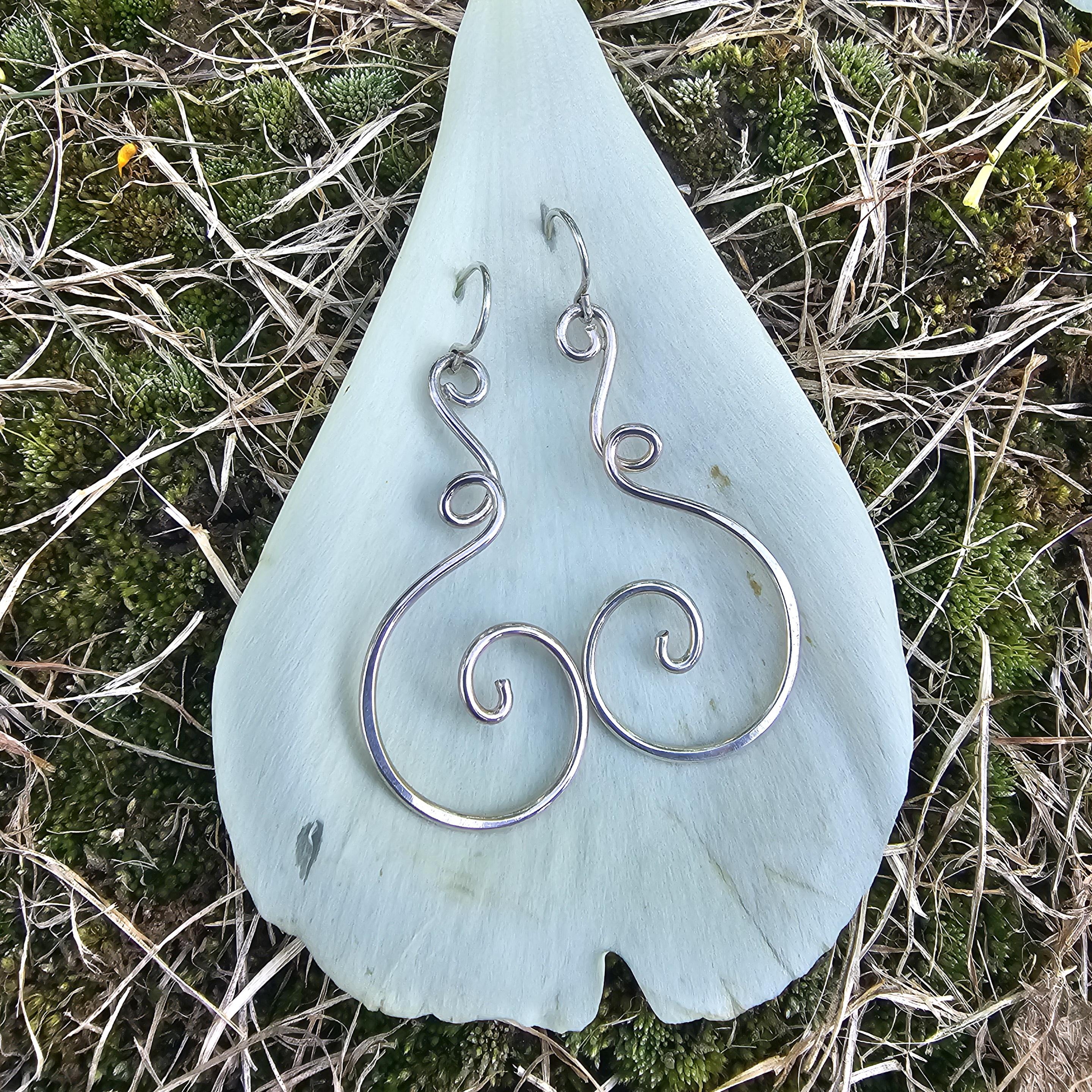 I've taken sterling silver wire and shaped it into a swirly spiral, hand tempered them, smoothed the rough edges off and tumble polished them to make them springy and shiny.